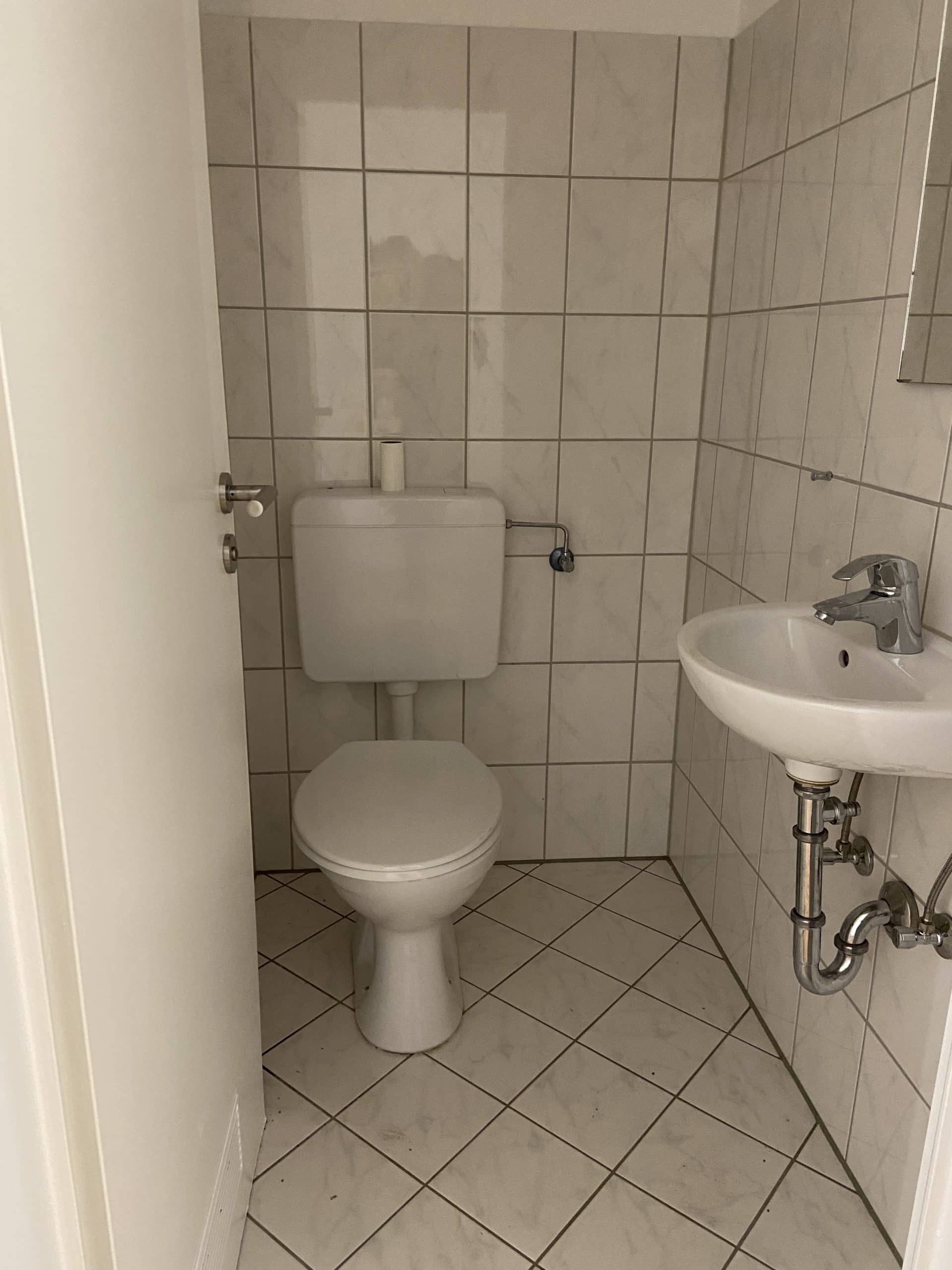 Es befindet sich kein direkter Waschmaschinenanschluss in der Wohnung. Ggf. besteht die Möglichkeit, nach vorheriger Zustimmung, das WC im Bad oder in der Gäste-Toilette auszubauen und an dieser Stelle eine Waschmaschine zu installieren. Im Kellergeschoss befindet sich eine Gemeinschaftswaschmaschine und ein Gemeinschaftstrockner sowie ein Trockenraum.