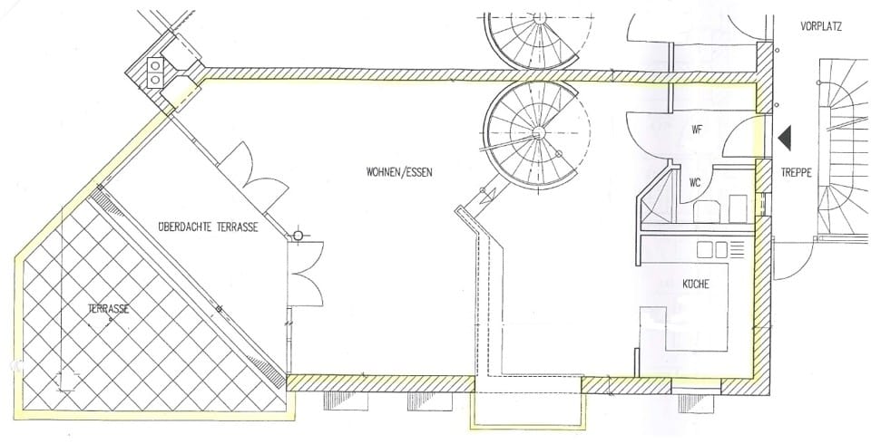 Die Wohnanlage umfasst drei Wohneinheiten und ist sehr ruhig, aber dennoch stadtnah gelegen. Die Architektur ist konzipiert als italienisch beeinflusstes Stadthaus-Palais mit privatem Vorhof-Bereich. Ein säulenumschlossenes Außentreppenhaus mit großzügiger Eingangstürsituation führt zu den Wohnungseingängen. Die Garagen liegen seitlich angeordnet im Vorhof.