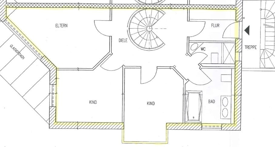 Das Haus befindet sich im Stadtteil Berg-am-Laim abseits der Hauptstraßen inmitten einer grünen Einzelhaus- und Einfamilienhausbebauung.