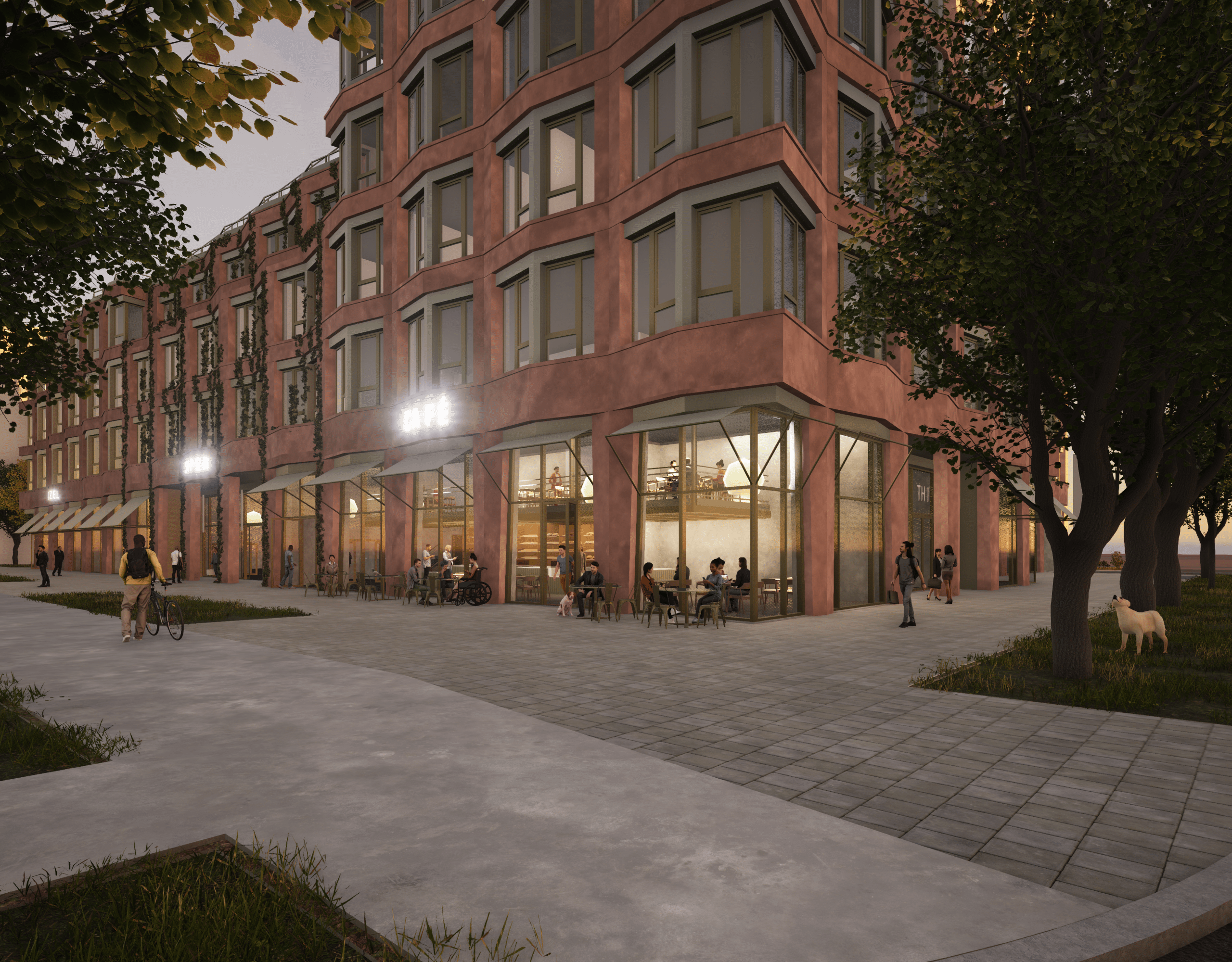 In der Erdgeschosszone entstehen Gastronomie-, Café- und Einzelhandelsflächen, in den darüberliegenden Geschossen Büroflächen,